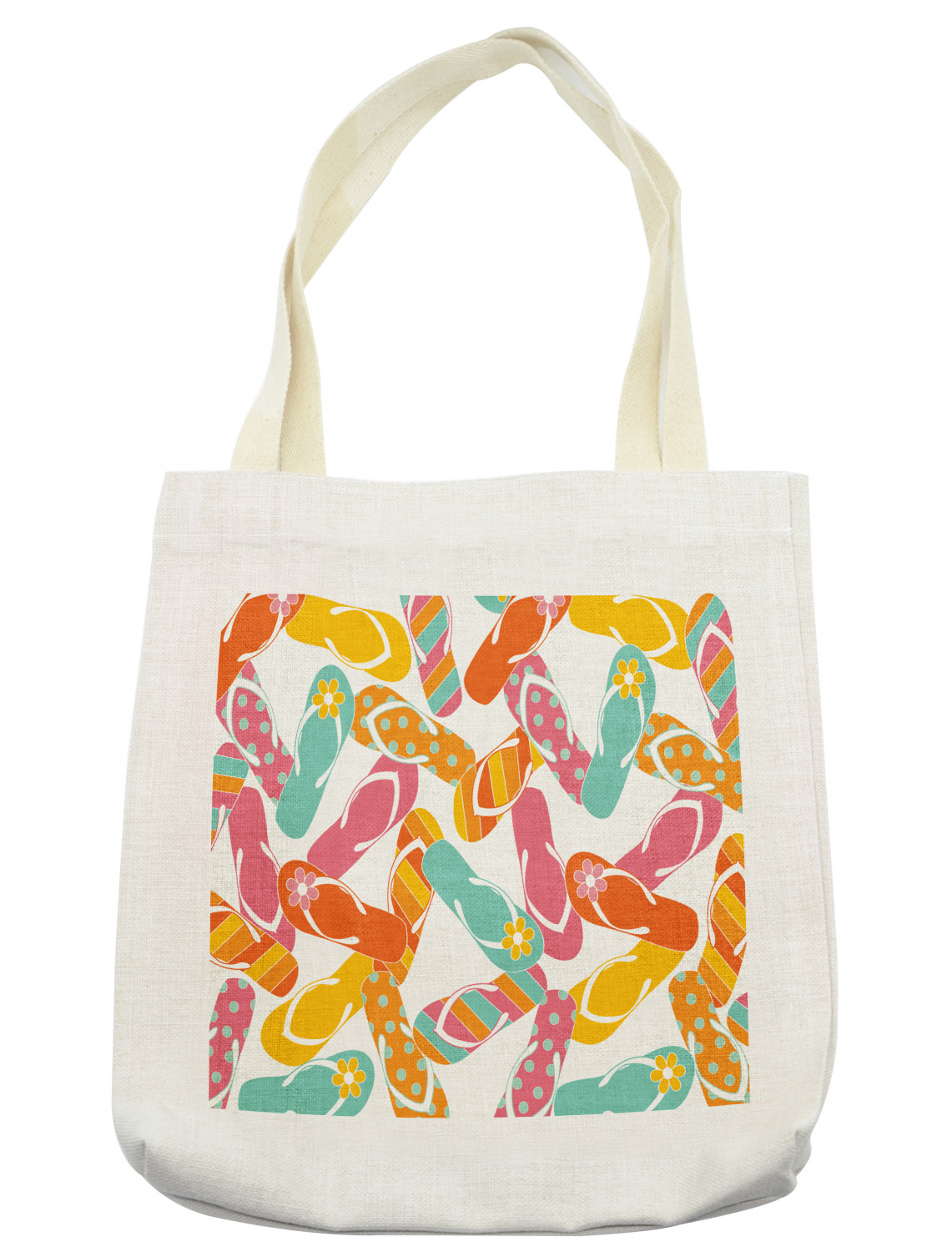 Summer Tote Bag Colorful Bunch Flip Flops Sandals Pattern Relax Holiday Sunbath Theme Groovy Graphic Cloth Linen Reusable Bag For Shopping Books Beach And More 16 5 X 14 Cream By Ambesonne